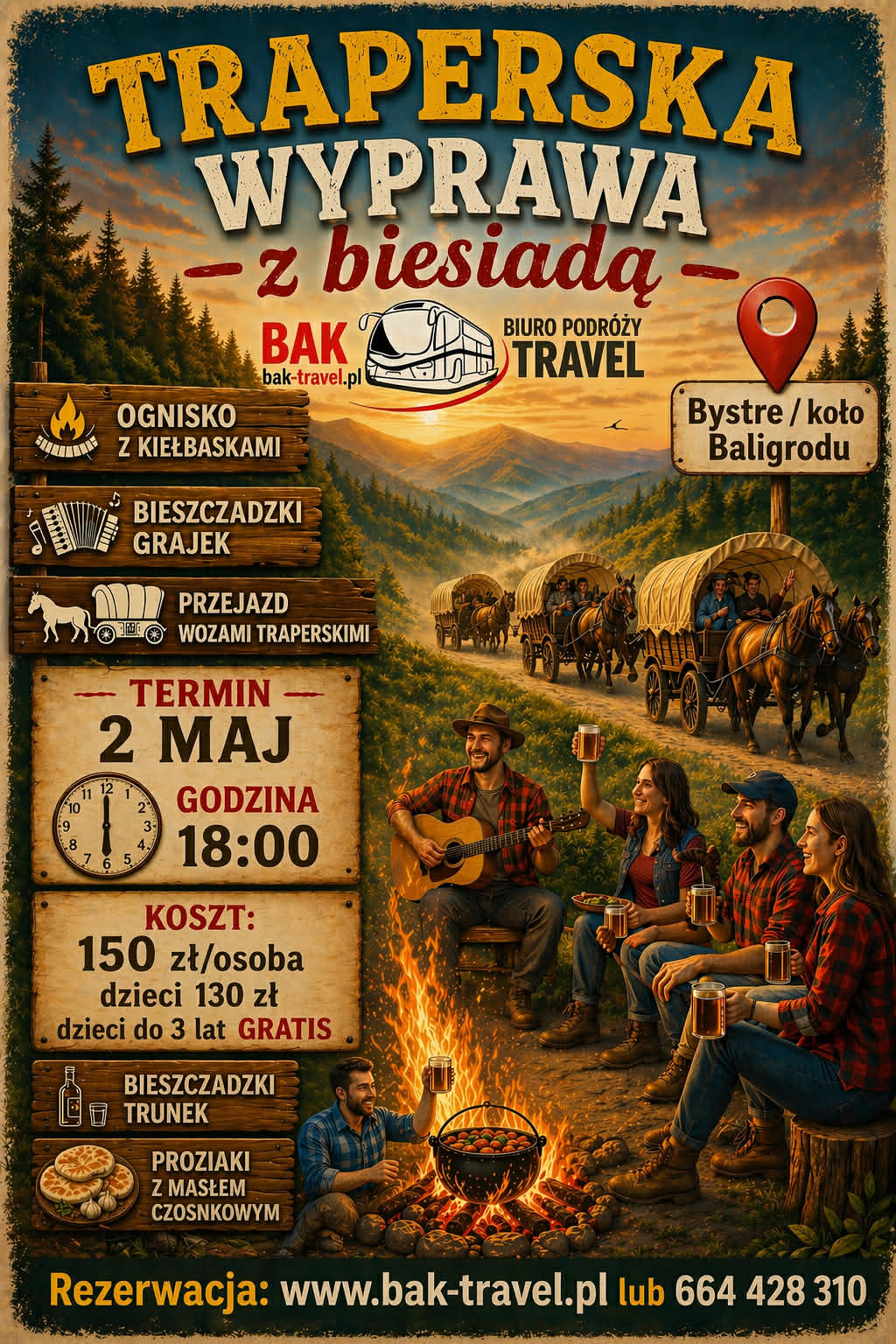 Wzdłuż trasy przez, którą będziemy przejeżdżać szumi Bieszczadzki las i płynie górski strumień co dodatkowo wprowadza błogi nastrój. Czas umili wodzirej, który zapewni muzykę na żywo i opowie prawdziwe bieszczadzkie historie. U NAS Coś dla DUCHA -zapalimy ognisko, zaśpiewamy , COŚ dla CIAŁA pieczenie kiełbaski, bieszczadzkie proziaki z masłem czosnkowym, ogórek kiszony i COŚ dla PRZYJEMNOŚCI skosztujemy BIESZCZADZKĄ BERBELUCHĘ ;)